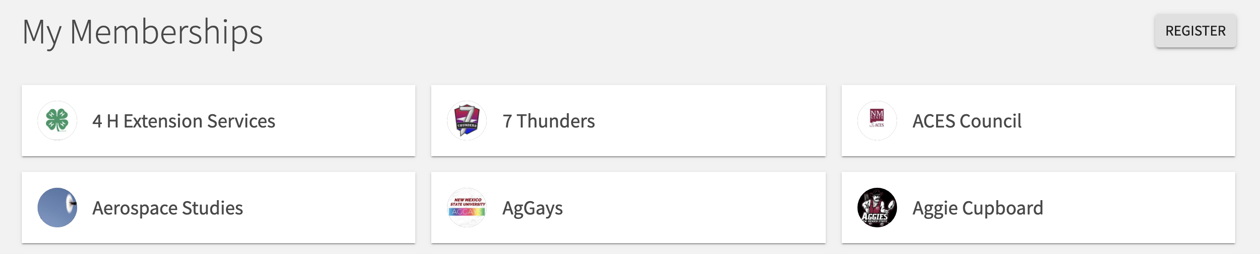 From here, you can click the tile for an organization to manage events, the roster, forms, etc.